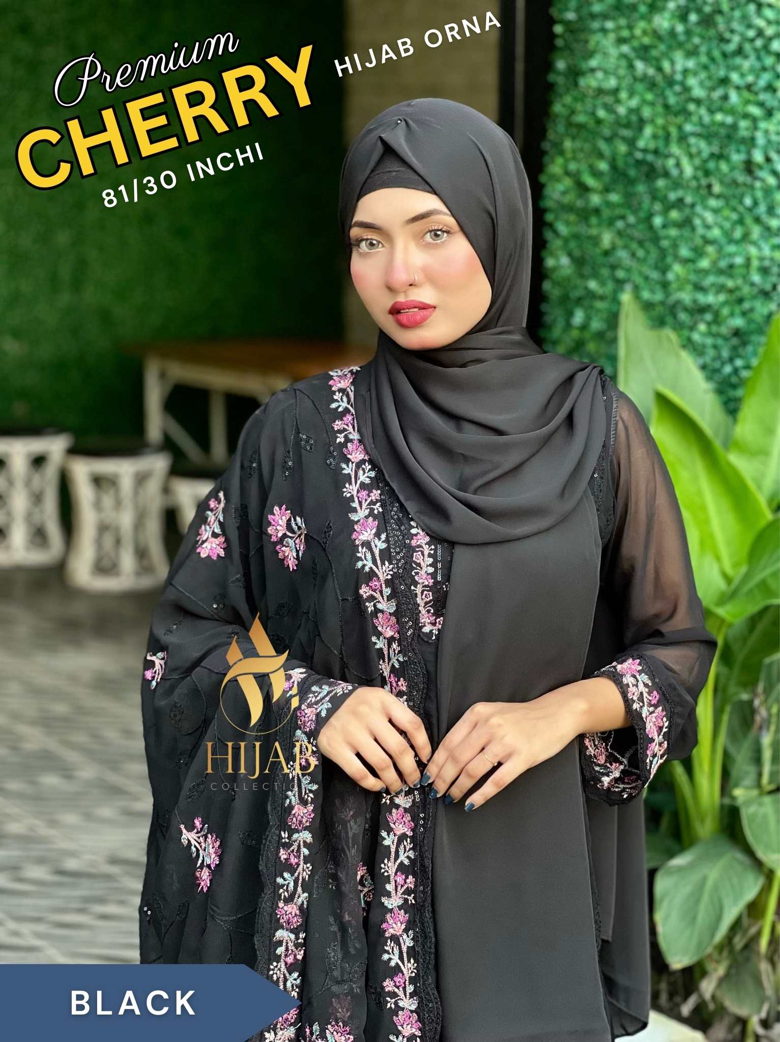 দুবাই চেরি জর্জেট হিজাব ওড়না -CGH-Black Color