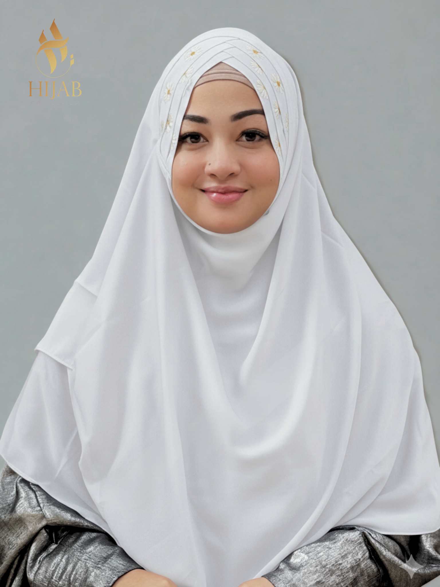 দুবাই চেরি জর্জেট লেস হিজাব ওড়না -D1LCGH- Lite Ash Color