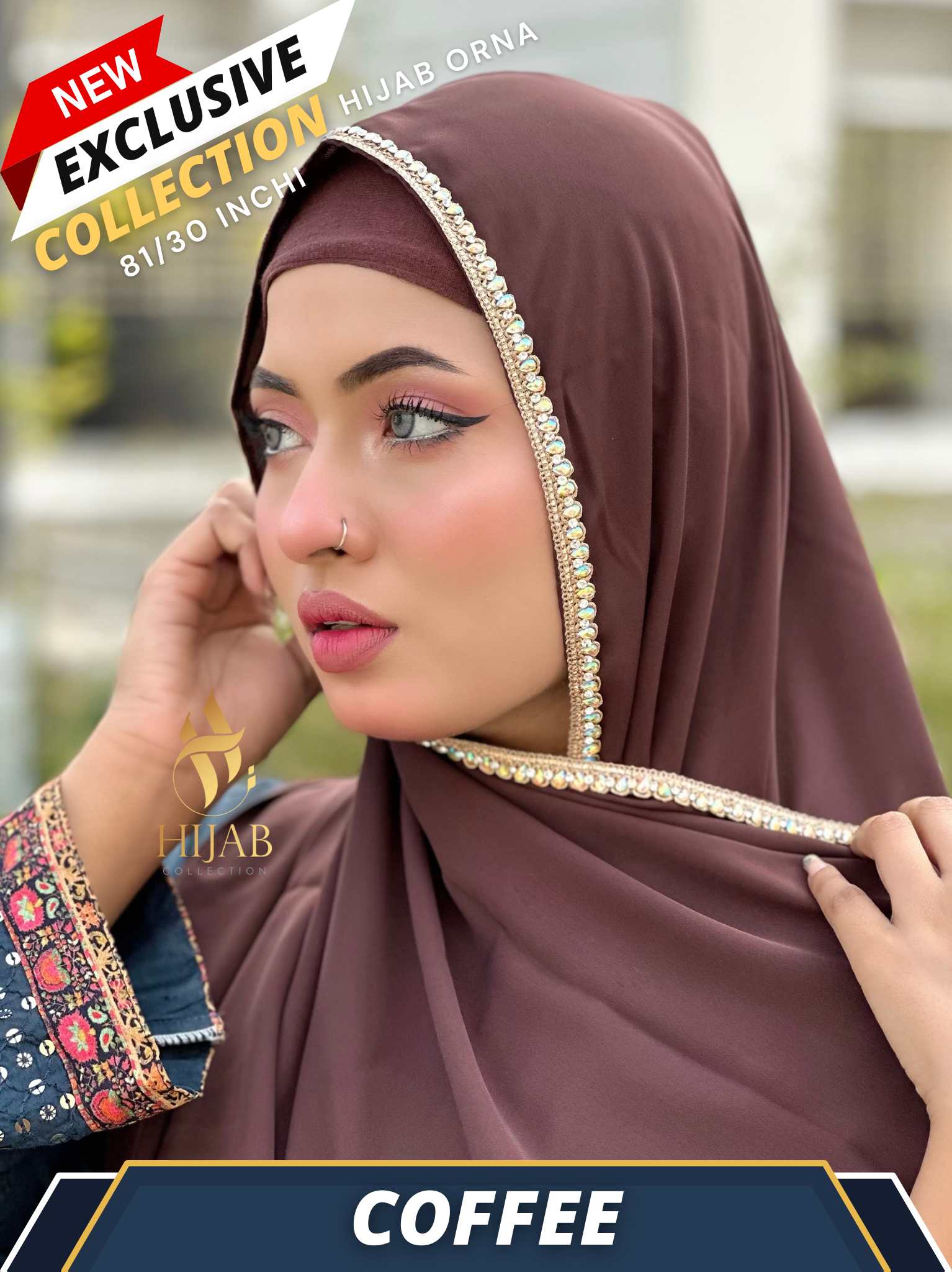 দুবাই চেরি জর্জেট ডাবল লুপ ইনস্ট্যান্ট ক্রস রেডি হিজাব -D2CROSRH- Coffee Color