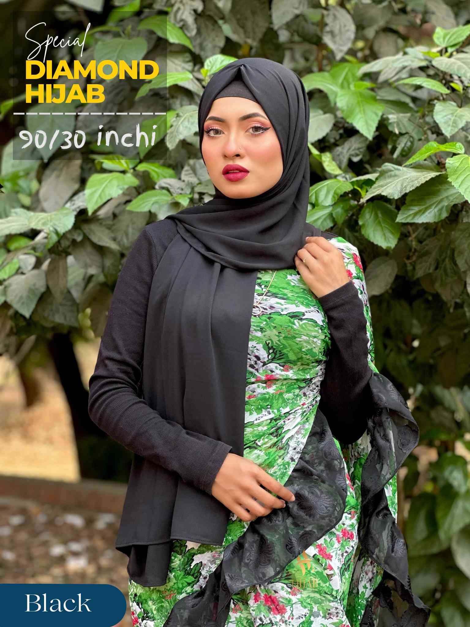 ডায়মন্ড জর্জেট হিজাব ওড়না -DGH- Black Color