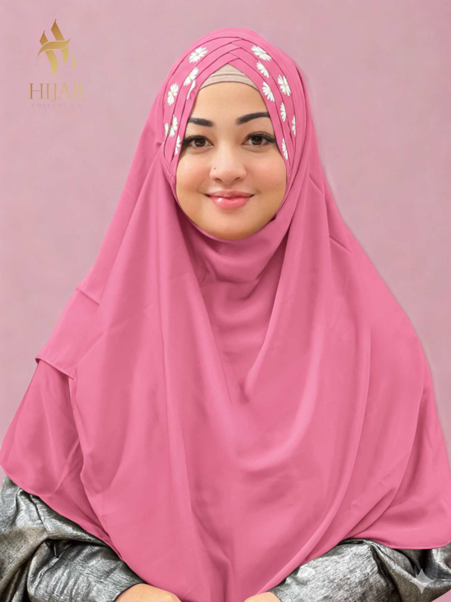ডায়মন্ড জর্জেট ডাবল লুপ ইনস্ট্যান্ট লেস রেডি হিজাব -LRHD1- Regular Pink Color