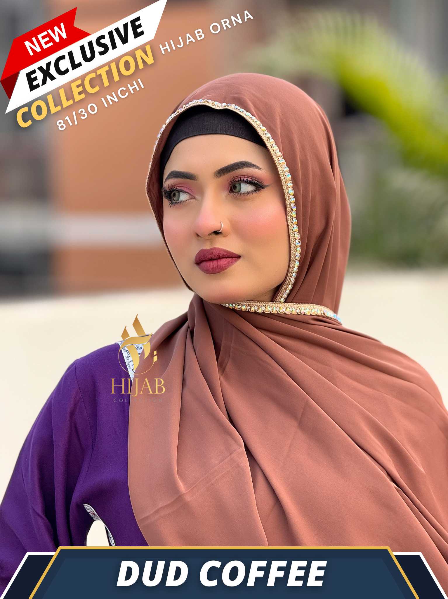 দুবাই চেরি জর্জেট লেস হিজাব ওড়না -D1LCGH- Dud Coffee Color