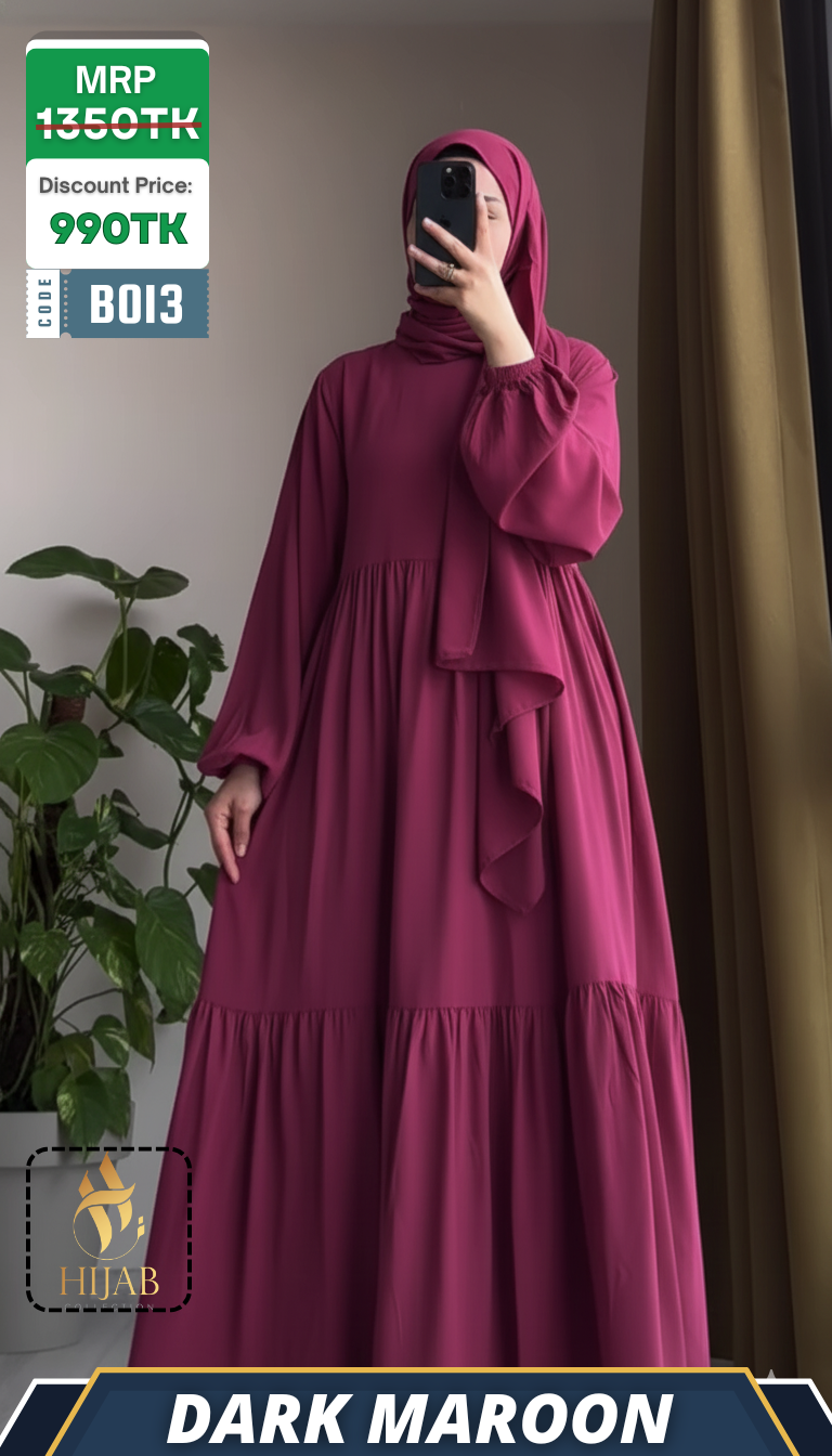✅ ফ্যাব্রিক : দুবাই চেরি জর্জেট 👉 সাইজ চার্ট : ফ্রি সাইজ (৭০ কেজির নিচে সবার ফুল কাভার করবে ) |