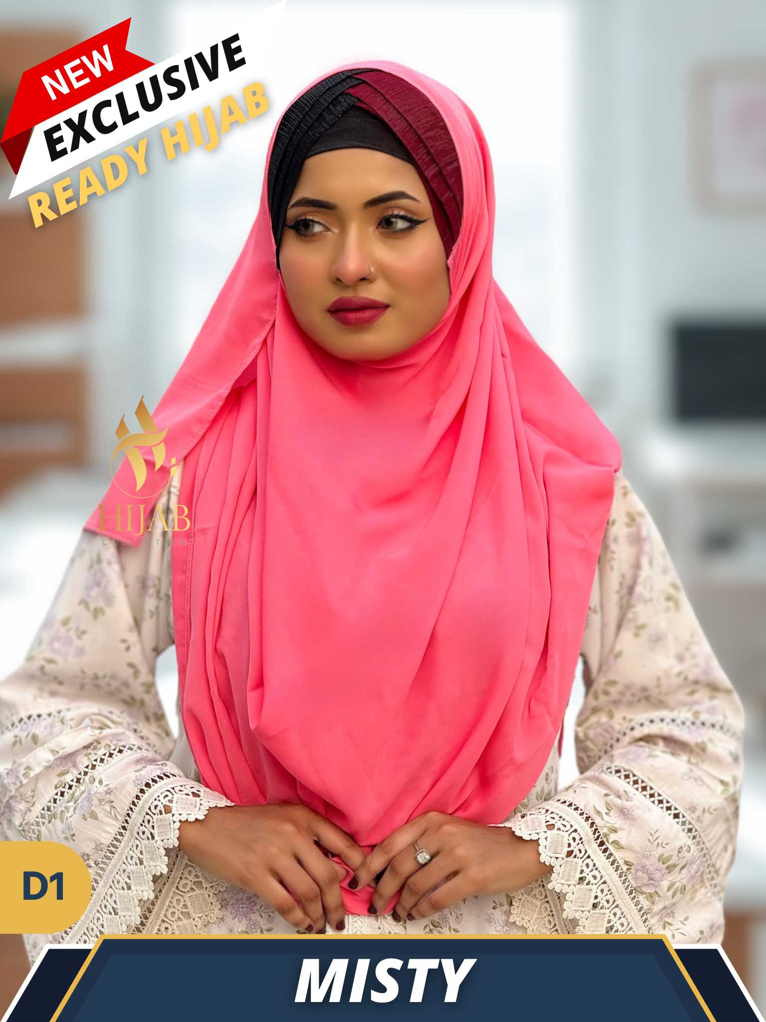 ডায়মন্ড জর্জেট ডাবল লুপ ইনস্ট্যান্ট রেডি হিজাব + নিকাব - HNRH - Baby Pink Color