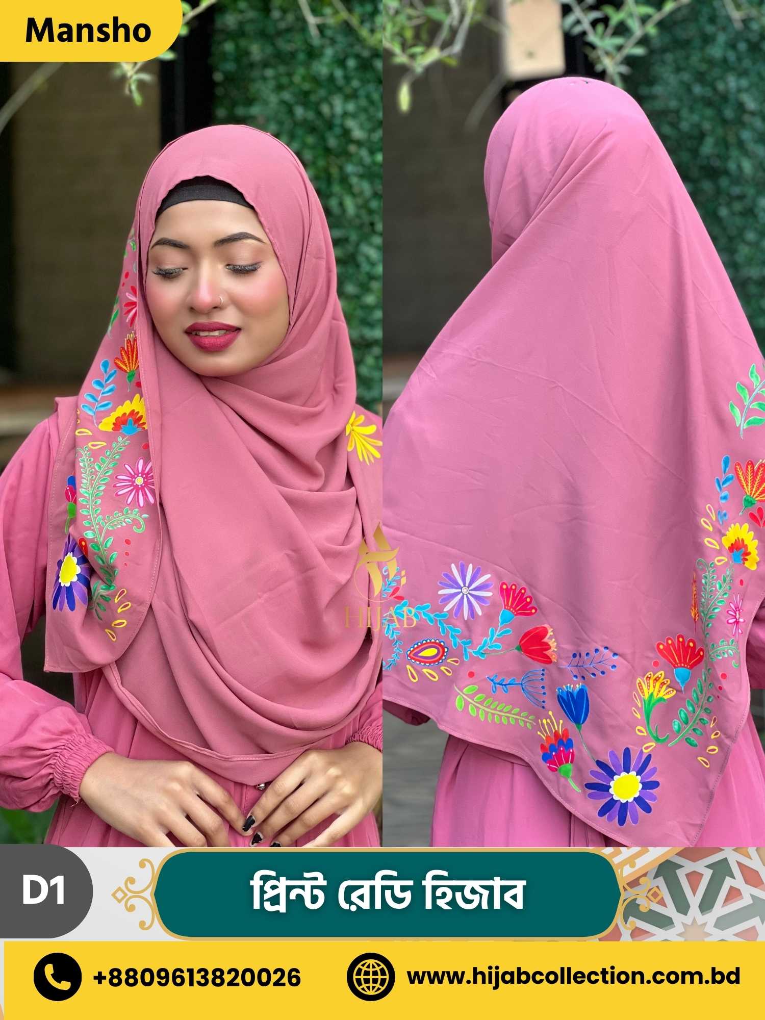 ডায়মন্ড জর্জেট ডাবল লুপ ইনস্ট্যান্ট রেডি হিজাব + নিকাব - HNRH - Mansho Color