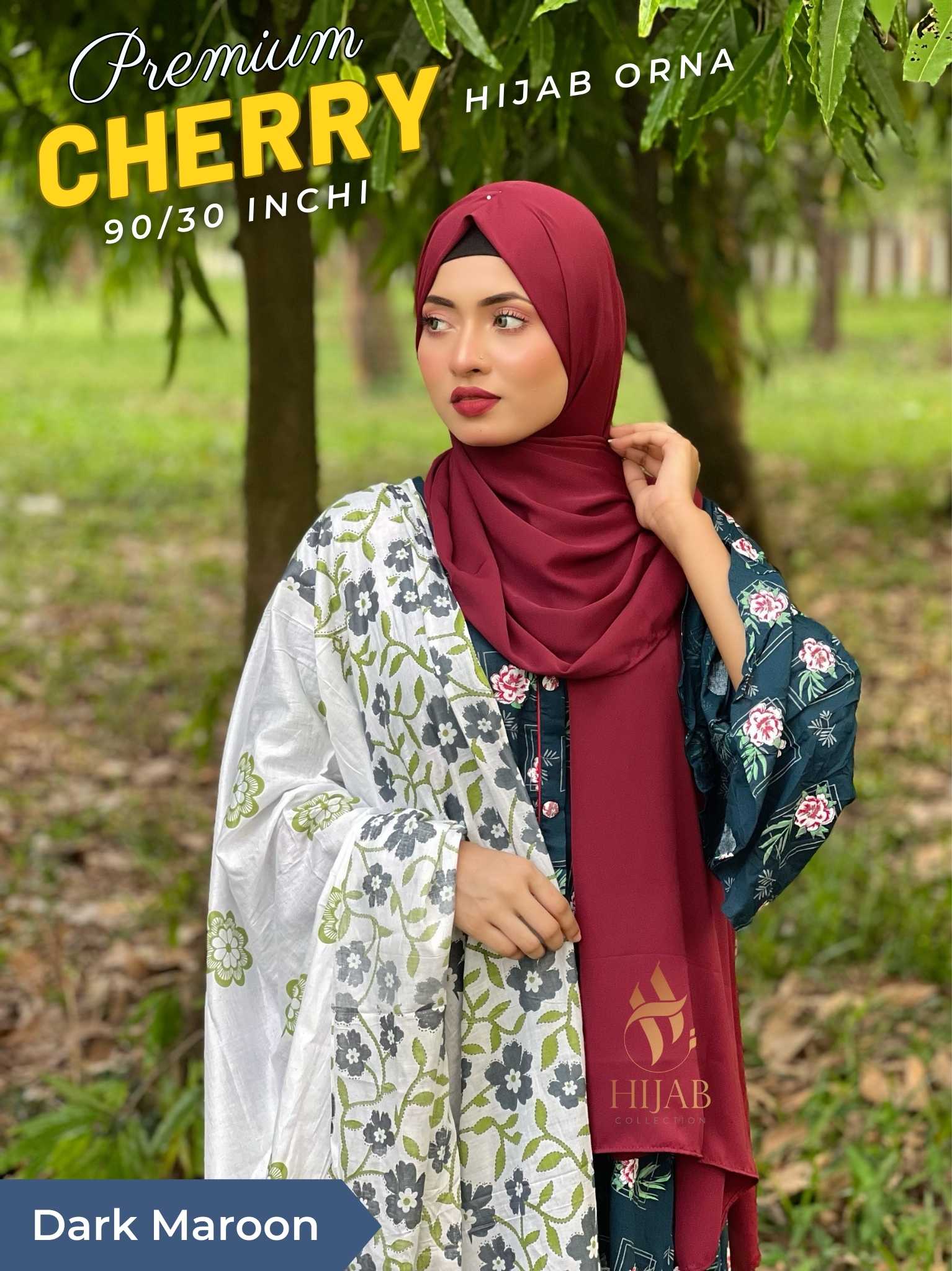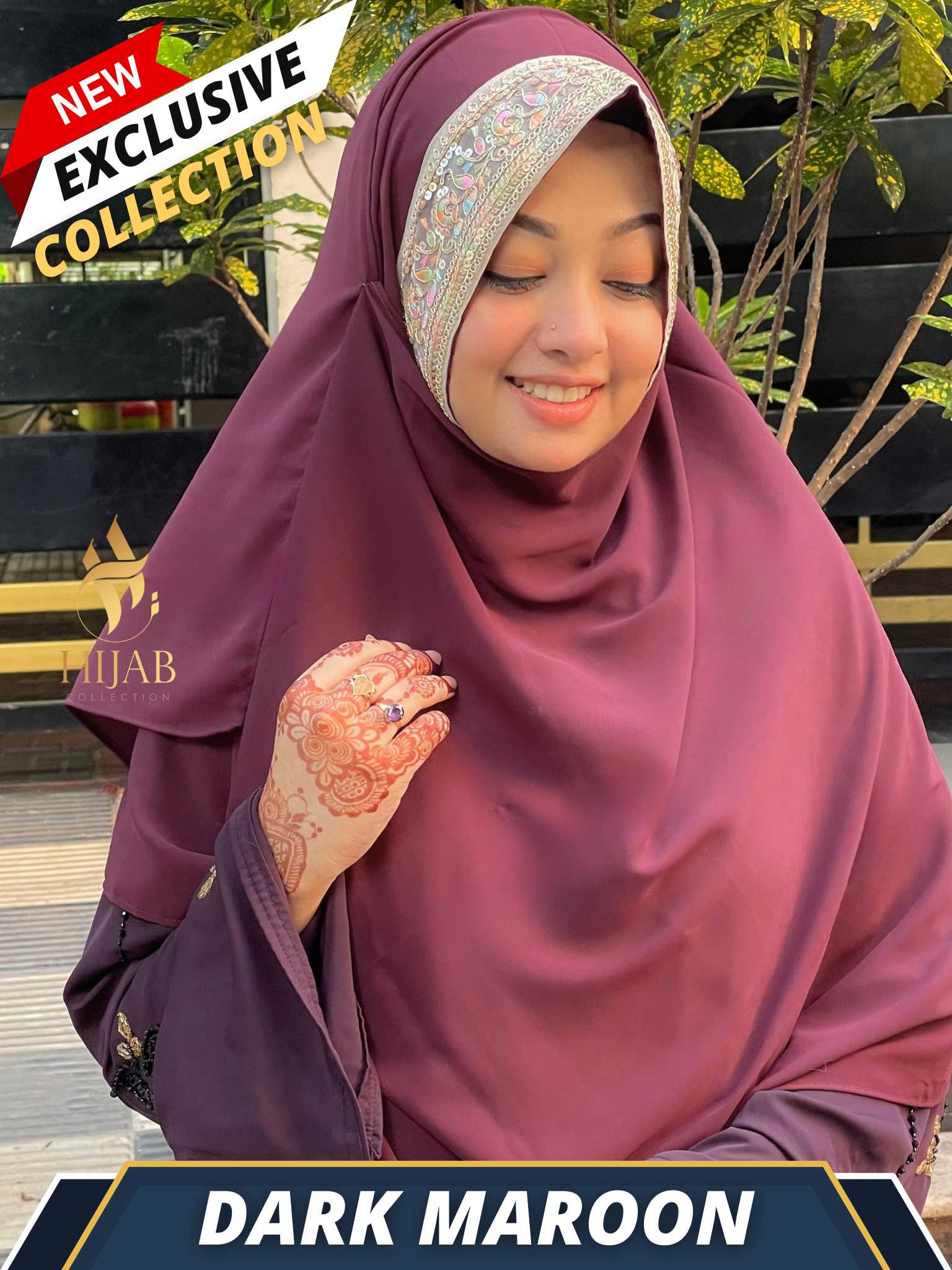 ডায়মন্ড জর্জেট ডাবল লুপ ইনস্ট্যান্ট প্রিন্ট রেডি হিজাব - PRHD1- Dark Maroon Color